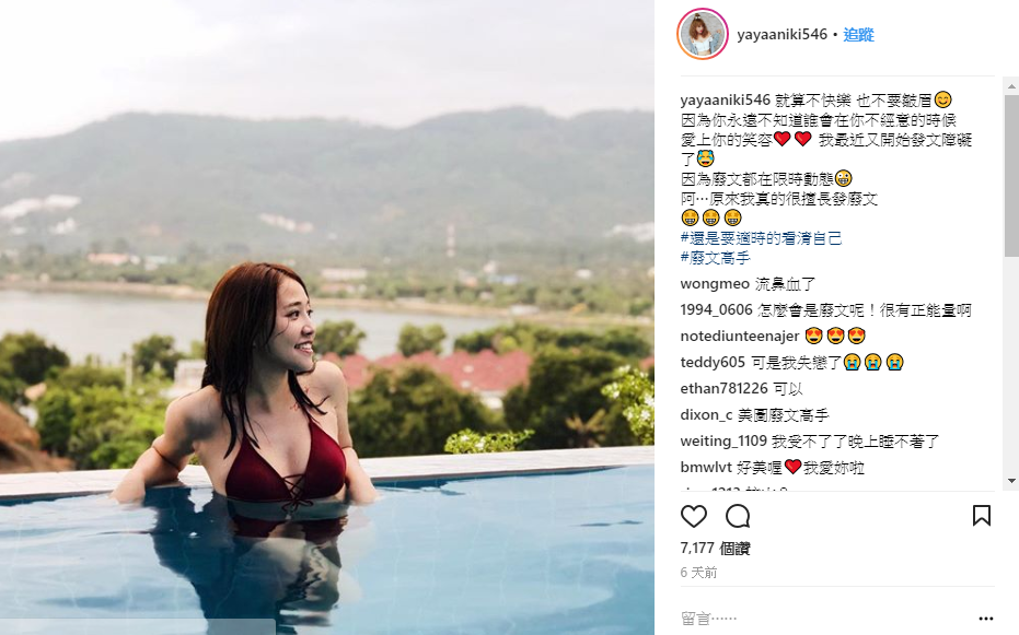 除此之外,亞亞IG「 yayaaniki546」還有很多福利照,喜歡亞亞的粉絲除了臉書粉專「亞亞 – Si’era」之外也務必要鎖定IG以獲得亞亞第一手消息!