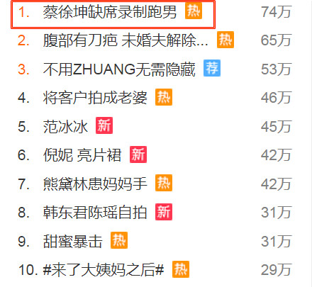 消息一出,「蔡徐坤缺席錄製跑男」的一詞也登上微博熱搜第一,蔡徐坤粉絲團官微也在5月4日上午做出回應,表示: