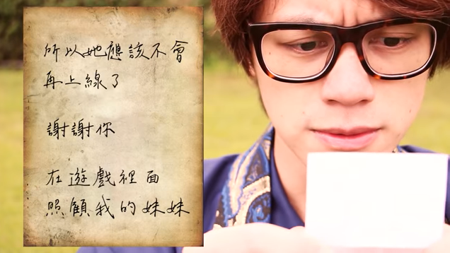 不料後來那個女生就沒再上線了,本來以為他可能只是沒再玩遊戲了,一陣子後howhow卻收到來自那個女生哥哥的訊息:「你好,我是他哥哥,我妹妹上個月車禍過世了,所以他應該不會再上線了,謝謝你在遊戲裡面照顧我妹妹。」看見訊息的howhow非常悲傷,現在也只能透過玩遊戲來懷念那段時光。