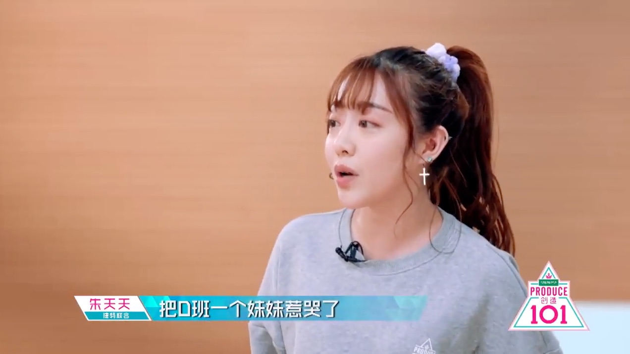近期在節目中,身在F班的朱天天被選為隊伍中的中心位置(C位),讓眾人嚇了一跳,開心的她也趁機會向D班的高秋梓道歉,當時她因為舞蹈和唱歌完全跟不上,即興饒舌時,她拍手亂叫也影響到旁邊正在認真表演的高秋梓,讓對方在表演完之後,坦言被朱天天嚇到坐在地上大哭。