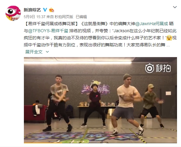 日前也有他在練舞時的畫面公開,也被編舞大神大讚易烊千璽在那麼小的年紀就可以如此瘋狂的有才華,迫不急待他以後的發展,只見他在影片中的動作簡潔俐落又到位,也讓網友忍不住在下面留言表示,覺得他這樣的實力跳之前TFBoys主打歌《青春修練手冊》廣為人知的「左手右手一個慢動作」很浪費,也有網友說他的實力根本不該在上綜藝節目,應轉往大螢幕,不然太浪費人才。