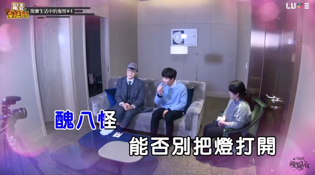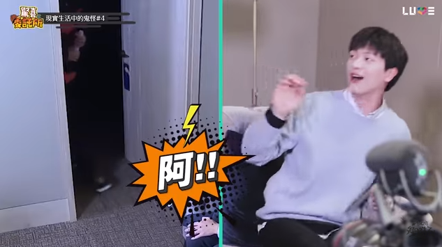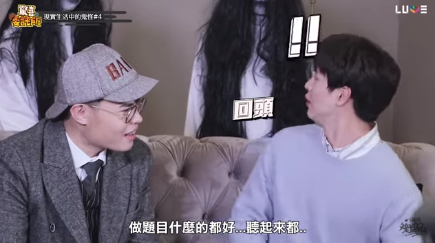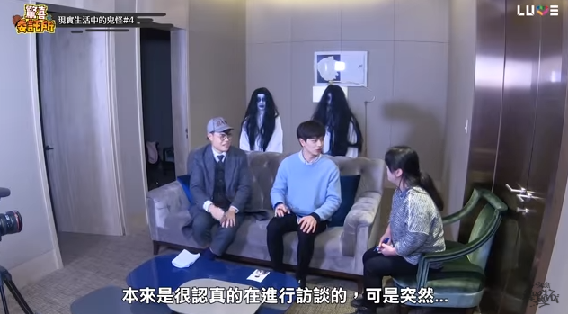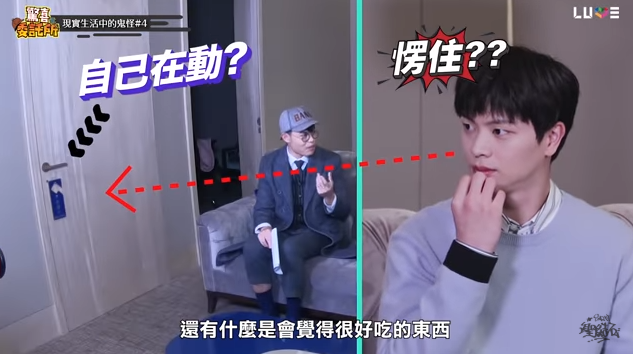 在這次的企劃中,聖結石找了兩位工作人員假扮成「鬼怪」,並與所有人串通好在鬼怪出現時要假裝沒看到XD 訪問開始時聖結石先安排旁邊的門把自己在動,製造懸疑氣氛,接著房門打開時安排其中一位白衣女鬼站在房間深處,陸星材看到嚇了一跳更大叫了一聲,接著發現大家都沒有反應時又大笑:「啊~你們幹嘛假裝沒看見」反應超級可愛XD