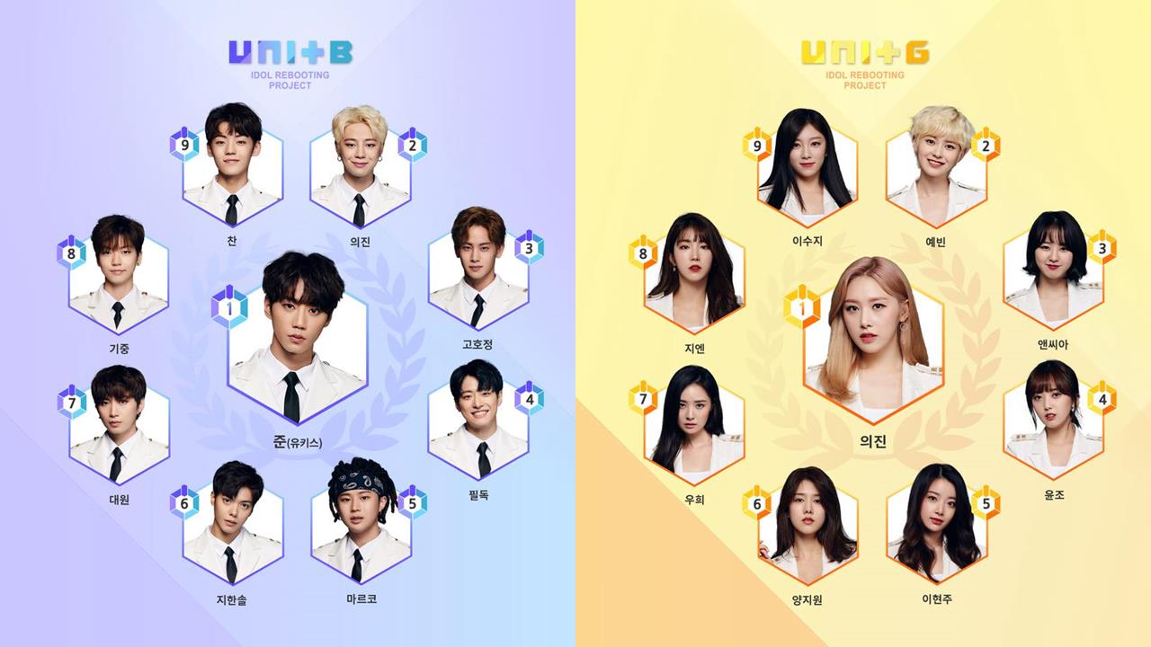 女團「UNI.T」則是由SPICA的楊知元、DIA的豫彬、Sonamoo的宜珍之外,Dal★Shabet的優熙、HV前成員胤祖、Laboum的ZN、SOLO歌手NC.A、April前成員李玹珠、The ARK的Su Ji組成,並由優熙擔任隊長。