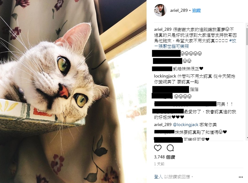 而妹妹事後也特別發了一篇IG寫下:「很謝謝大家的追蹤讓我圓夢 不過真的只是好玩沒想到大家這麼支持我哥因爲他跑來,希望大家不用太認真#放ㄧ張厭世貓可樂照」並放上一張可愛的貓咪照。哥哥也搞笑的回應「什麼叫不用太認真 從今天開始你變網美了 要認真一點」。