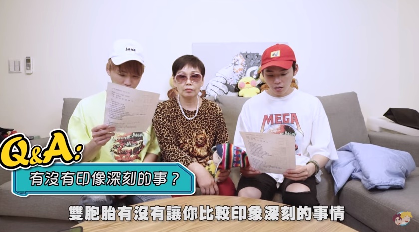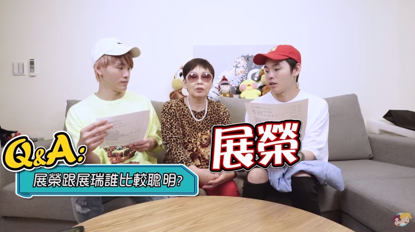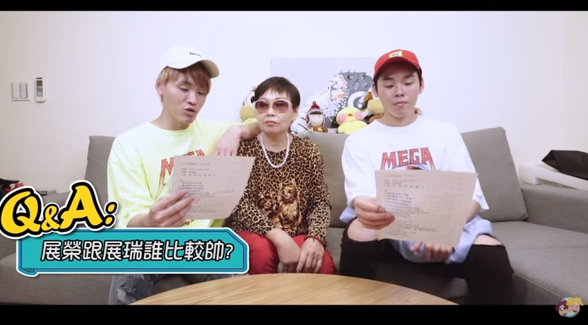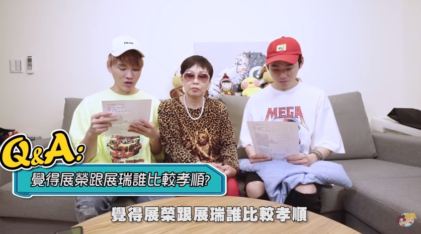 但其中,兩人問到媽媽是否有比較印象深刻的事情時,媽媽提到,兩人在五個月時,腸胃炎一直拉肚子,所以就送到醫院去住了兩個月。而在這兩個月期間,媽媽全心全意地照顧兩人,讓她現在回想起來直呼「很累」一夜白髮,而展瑞也補充說明「就是靠爸媽把我們救回來」。影片最後,兩人也感謝媽媽一直以來都支持著他們,讓他們去做他們想做的事情,一直無條件的愛著他們,互動相當感人。
