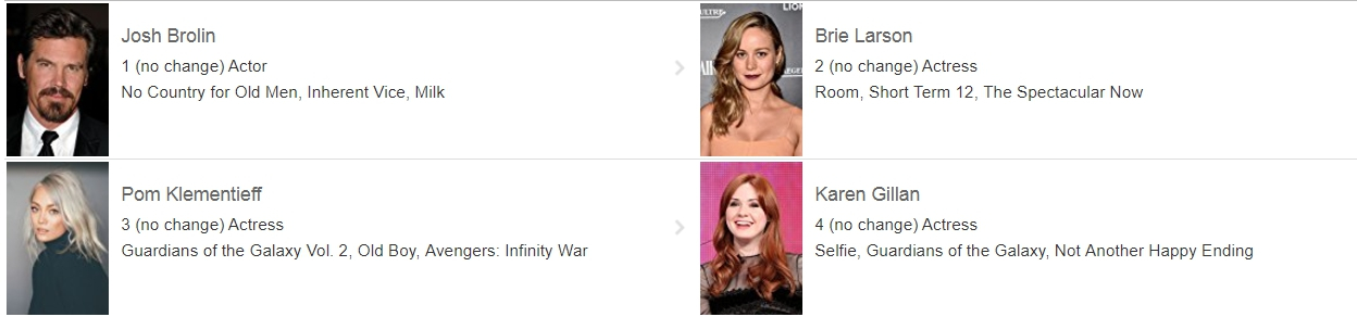 在許多影迷看完了 2018 年上映的漫威主線大片《復仇者聯盟3:無限之戰》(Avengers: Infinity War)之後,走出電影院的第一時間不是抓著朋友討論劇情,就是立刻用手機上網看鄉民們的評論,各國網友也湧上了知名的電影評論網站 IMDb 為看過的最新電影進行評分,同時也有很多人開始火力全開搜尋自己喜愛的演員,現在 IMDb 的最夯演員榜就幾乎都會漫威旗下的演員給佔據。(以下有些微劇透,請斟酌瀏覽)