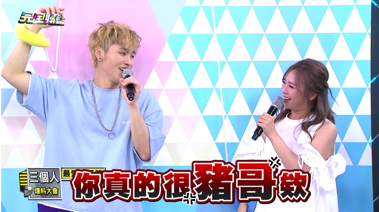 當被問到誰最愛開黃腔時,展榮被爆料,就算已經認識了那麼久,有時候茵聲穿稍微露一點或在換衣服的時候,展榮還是會評論她的身材,也會看別的女生的屁股,讓茵聲不禁大喊「你真的很豬哥!」,也讓展榮緊張的表示「你說太多了」,笑翻眾人。