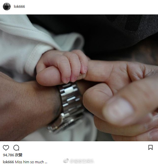 而在昨日(5月20日)這天,余文樂在IG發布了一張兒子Cody小手照片,寫著「Miss him so much ...(好想他)」,照片中兒子Cody的小手緊緊握住爸爸的手指頭,畫面十分溫馨。