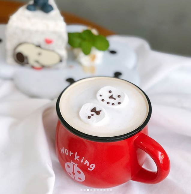 飲料上的雪人也太可愛了吧~先拍個5張、10張照片再說!