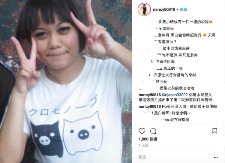 20日也po出自己的舊照,大喊「我不是胖,只是骨架大」,也讓網友搞笑回應「你不是胖,你只是肉多」、「現在好瘦喔」、「最正的一張」,黑鬼兒也自己回應「Po美照沒人屌,胖照破千我傻眼」,笑翻眾人。
