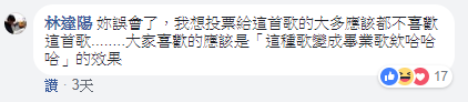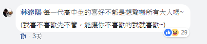 另一方面同為雄中校友的知名詩人林達陽則在對此事發表看法,先是十分難以接受到說不出話,之後在留言處也提出是反串:「指出雄中畢業生票選結果並非喜歡聖結石,而是透過投票來反抗: 「每一代高中生的喜好不都是想驚嚇所有大人嗎」、「認真表達對投票選一首畢業歌這種行為的不屑」、「我想投票給這首歌的大多應該都不喜歡這首歌........大家喜歡的應該是『這種歌變成畢業歌欸哈哈哈』的效果」。