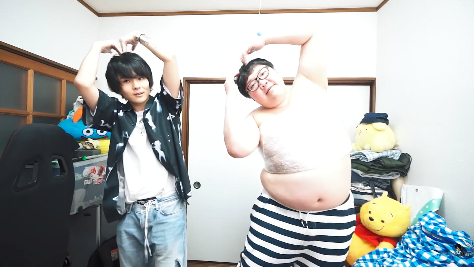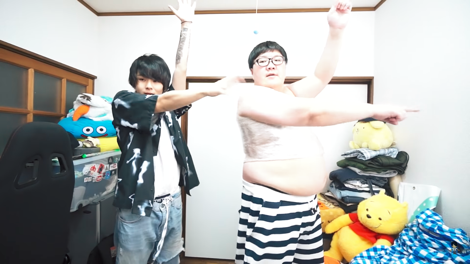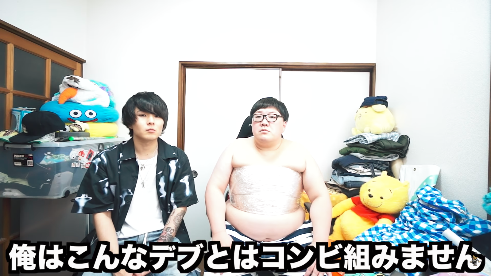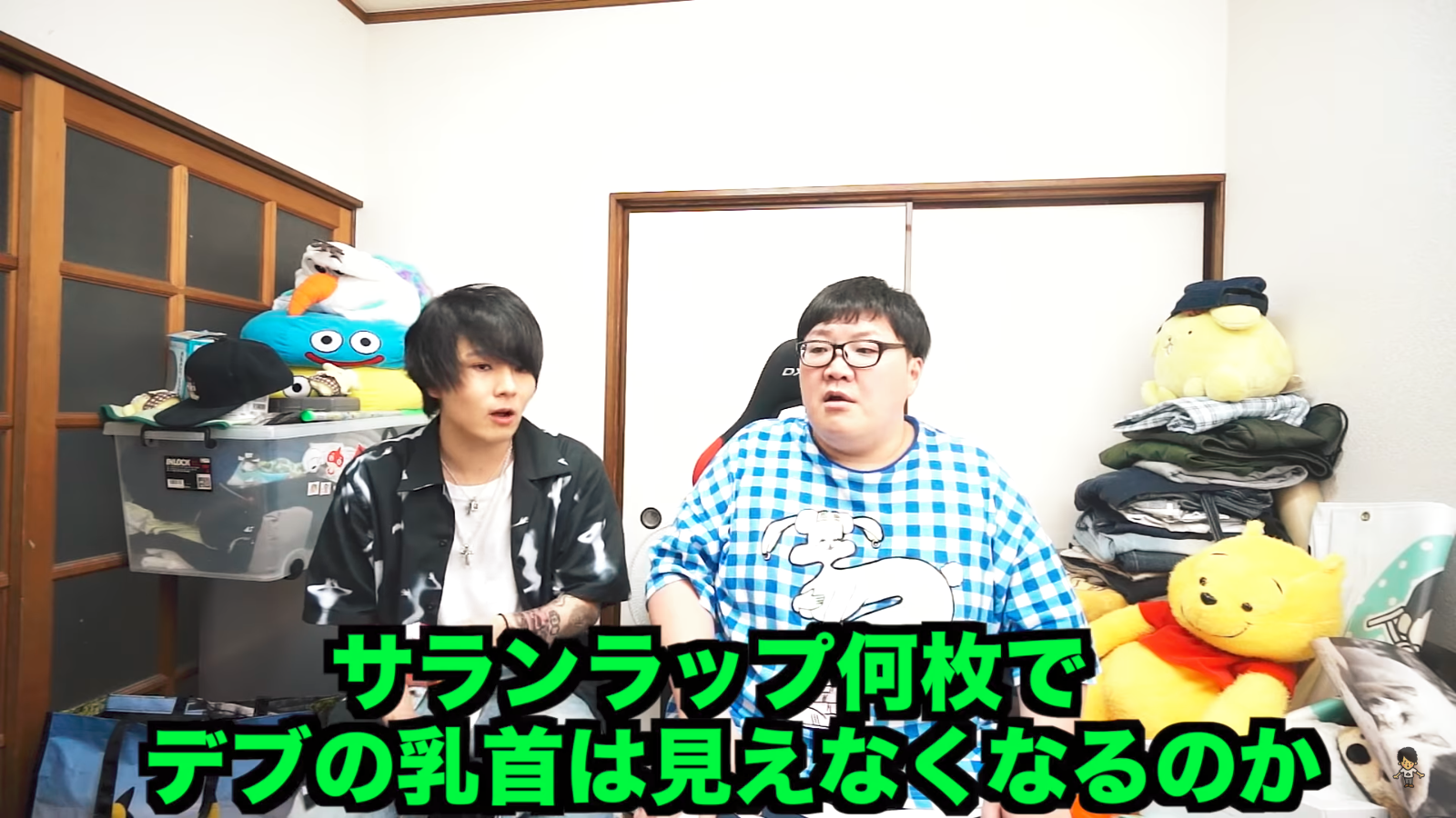 而因為DEKAKIN的胸部比較大,兩人也搞笑地以PFPF Channel的名義,試拍了兩個影片。第一個主題是:「用幾張保鮮膜才能遮住胖子的乳頭呢?」只見兩人開始用力的纏保鮮膜上身,最後終於在試到第30層的時候,成功看不到DEKAKIN的乳頭XDDD