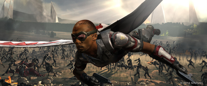 ▼獵鷹飛行在瓦干達戰場上的電影動態預覽圖。