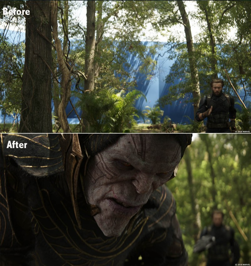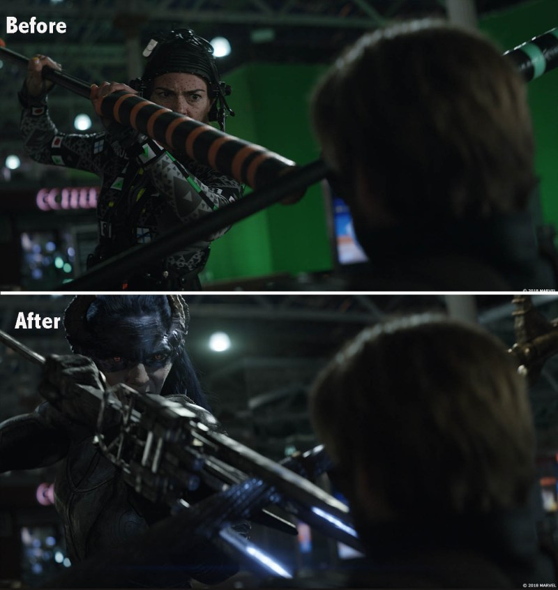 4 月底在各國陸續上映的漫威超級英雄主線大片《復仇者聯盟:無限之戰》(Avengers: Infinity War),布局 10 年的高潮劇情讓影迷感到血脈噴張,不過這部耗資 3 億到 4 億美元的商業大片,很多影迷肯定會好奇幕後的製作過程,近期漫威就釋出了相關的特效前後對比照片,讓我們可以瞭解那些電影中的名場景是如何拍攝出來的。