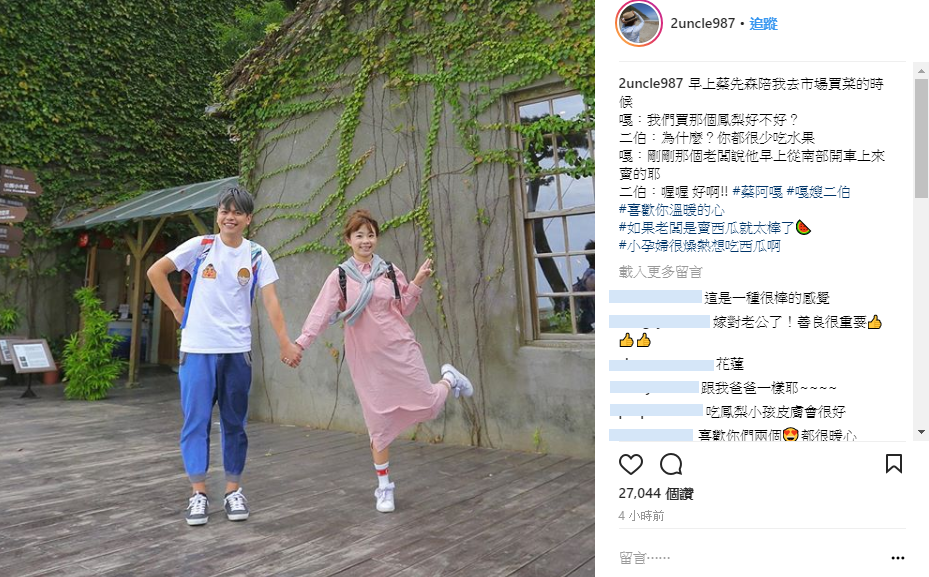 同天二伯也在IG分享與阿嘎開心出遊的照片,並與大家分享蔡阿嘎的貼心買水果的暖男舉動,還打上:「喜歡你溫暖的心」甜蜜日常讓人稱羨!