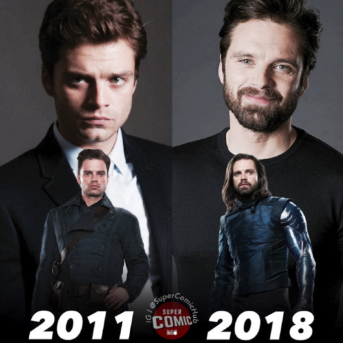 ▼「酷寒戰士」賽巴斯汀斯坦(Sebastian Stan)也跟著美國隊長的造型一樣變化,從稚嫩的大男孩形象演變成《復仇者聯盟3》的飄逸長髮鬍鬚美男,果然是漫威電影宇宙最受歡迎的 CP 之一。