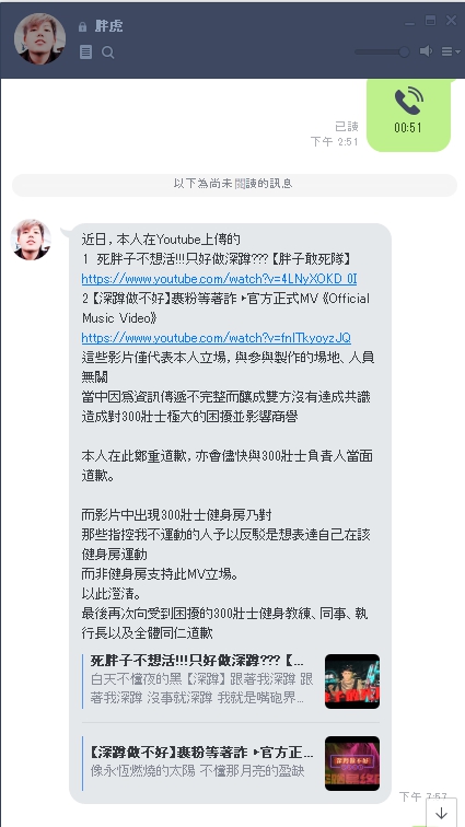 昨深夜胖虎在臉書打上「先看完吧,想說的話都在裡面了。」並附上影片連結,告訴大家自己挑戰館長整個事件的心路歷程,也在影片下方打上:「你永遠不懂我傷悲」在以片中以自白的方式說明所有事情的原委。