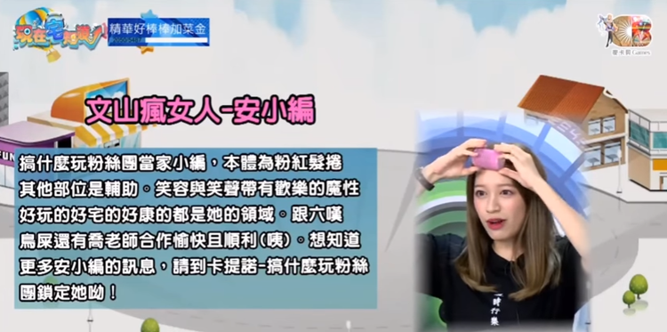 搞笑的她也被封為文山區的瘋女人,在Twitch的名稱為「安安邊緣子」,個性自然又不做作,與南韓女團EXID的成員Hani,有很高的相似度,因而爆紅。也曾在自己的YouTube頻道邊緣子安安,po出結婚影片,也曝光她與老公老周相識的過程。