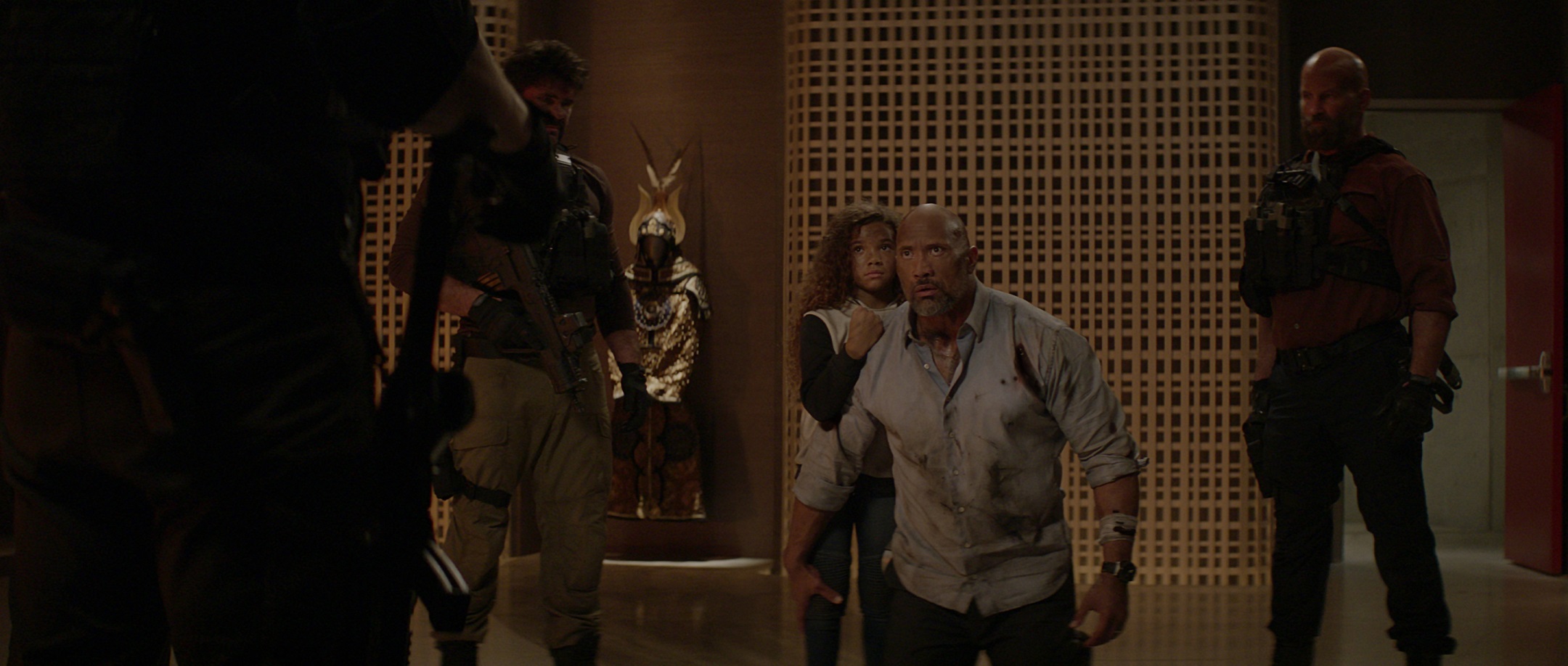 【摩天大樓】敘述一名前FBI人質救援小組組長兼退伍軍人威爾福特(巨石強森 飾),專門負責摩天大樓(驪珠大廈- 240層的高樓)的保全。他為了工作來到香港,不巧世界上最高、最安全的大樓發生大火,而他被栽贓為罪魁禍首。威爾一邊逃亡、一邊試圖找出真凶還自己清白,同時必須救出大樓中受困於火海的家人。