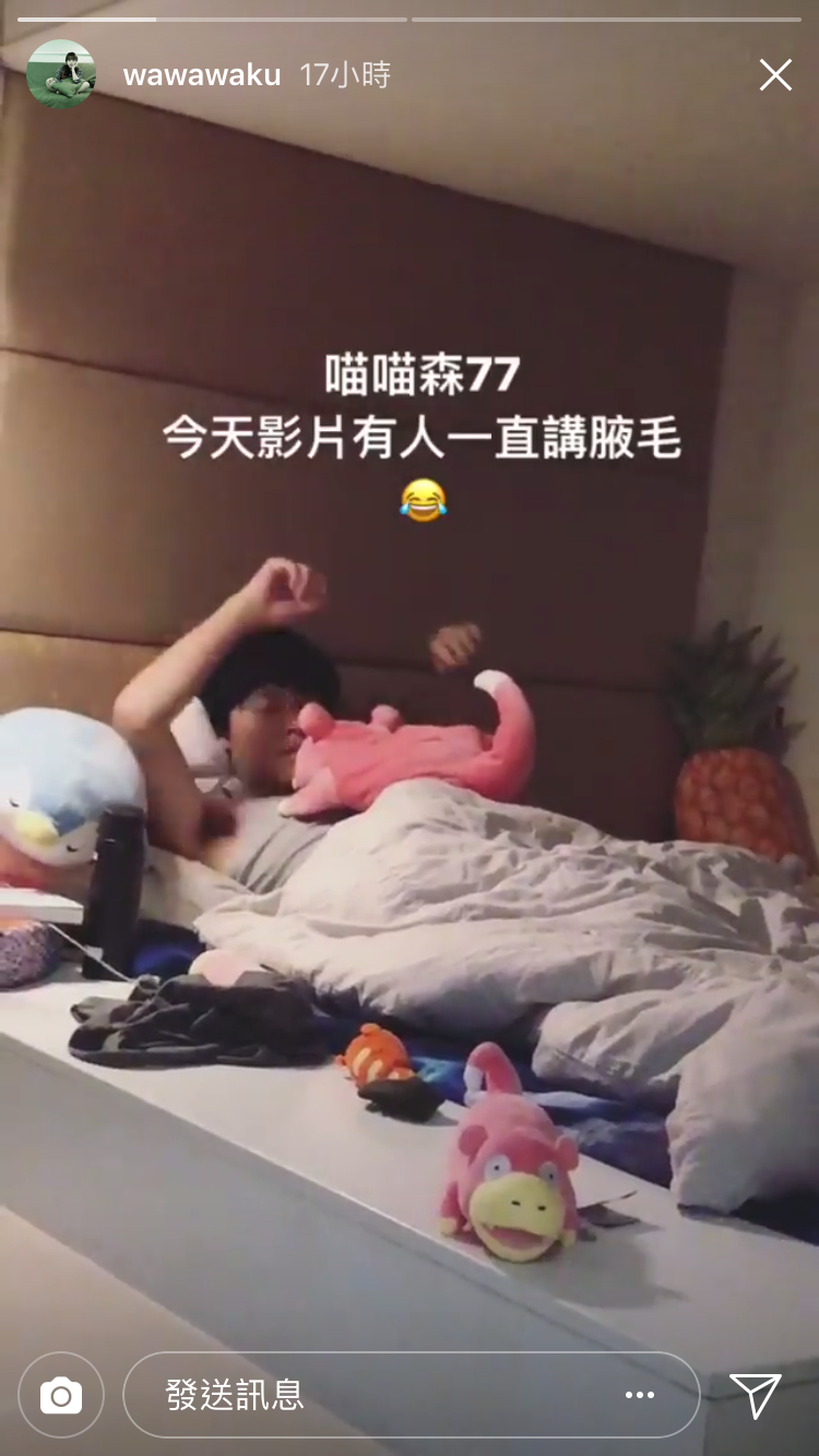 影片發布不久後,古娃娃在IG限時動態放上了一段藏鏡貓鬱鬱寡歡的影片,並且加上說明:「喵喵森77,今天影片有人一直講腋毛」。影片中喵喵說:「腋毛怎麼了?」古娃娃則說:「我看。」接著喵喵舉起雙手超無奈的說:「腋毛怎麼樣?哪有男生會修腋毛」看樣子對於影片下方的留言非常在意XD 娃娃則在一旁說:「生氣喔?你很生氣喔?」語氣略微心疼,兩人日常的互動也閃瞎粉絲。
