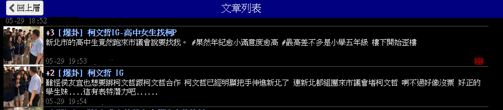 除了IG爆量討論之外,PTT的八卦板網友發布了【[爆卦] 柯文哲IG-高中女生找柯P】的標題之後,鄉民也相當關注此事,熱烈討論期待能夠把這個可愛的女生神出來,本來大家只能依據校服判斷事新莊高中,後來終於有網友貼心送上傳送門「ooyi.z」!點進去女生的IG一看,可以發現她是今年的畢業生,而貼文裡面沒有什麼她自己照片,看起來像是相當文藝的女生,粉絲也有兩千多人!而這次在柯P影片中爆紅她則沒有做出任何回應。