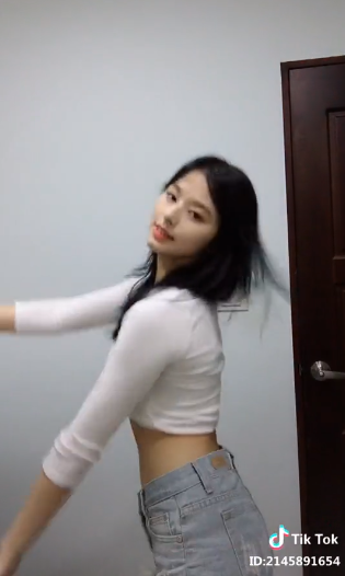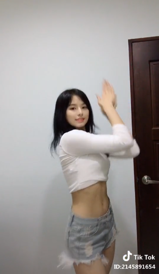 只見影片中她身穿與twice打歌服相似的短版白色上衣,露出性感川字腹肌,搭配性感牛仔熱褲,隨著音樂精準地重現《What is Love?》的舞蹈,本就與子瑜十分相似的臉蛋時不時露出甜美微笑,加上舞蹈動作,舉手投足之間,跟子瑜真的相似度超高!