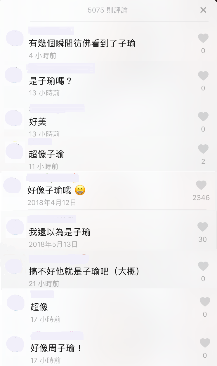 這段抖音有近八萬個愛心,更有五千多則評論,網友紛紛驚訝留言:「有幾個瞬間彷彿看到了子瑜」、「好美」、「超像子瑜」、「我還以為是子瑜」、「搞不好就是子瑜吧」、「超像」、「這是子瑜本人吧」、「是子瑜的分身,真的好漂亮」。