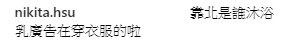而粉絲看見舒子晨回覆之後,也紛紛力挺,還tag該網友留言:「你洗澡穿衣服我就扶你去精神病院」、「你來搞笑的嗎?」、「先去刷牙再來留言啦!」、「有事嗎?」、「大腦是一個很棒的東西 我希望你也能夠擁有」,就連黑人陳建州都留言:「千萬不要穿衣服洗澡喔」而該網友後來已經刪除留言。之後舒子晨也在臉書再次回應:「本來就沒人穿衣服在拍沐浴乳廣告的吧!皮膚那麼嫩 穿衣服是看得到嗎?」