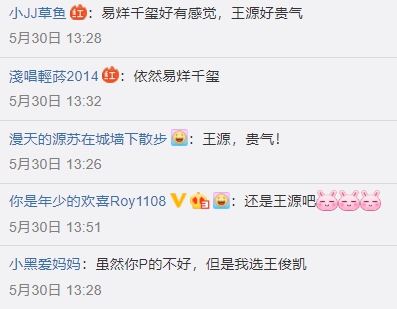 王俊凱和王源被網友封為古典英俊小生,小飛流則被大讚非常有男子味。粉絲看到蔡徐坤的p圖照,則跪求網友放過他,因為對粉絲來說實在不好看。楊洋則被許多網友稱讚蓄鬍同樣很帥,而且不顯老成。而裡面最受到網友青睞的,還是易烊千璽,這一蓄鬍完全大改他的形象,讓鮮肉徹底變男神,難怪讓粉絲暴動!