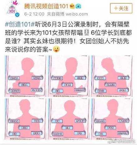由韓國Mnet《Produce 101》正式授權,中國騰訊視頻推出的偶像女團競演養成類真人秀《創造101》,主打從華語圈43家經紀公司、練習生公司,共計101名練習生中,由全民票選出11人組成全新女團,共同爭取出道機會。