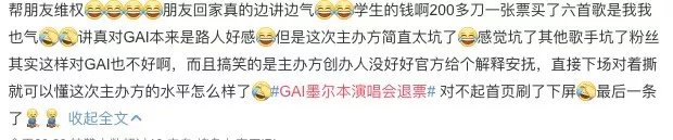 事件一出,網友們對Gai的表現大打失望,並且據了解,花了大錢買了前排的票,到了現場發現居然買看台的人也能夠到前排,墨爾本的演唱會算是特別失望了。