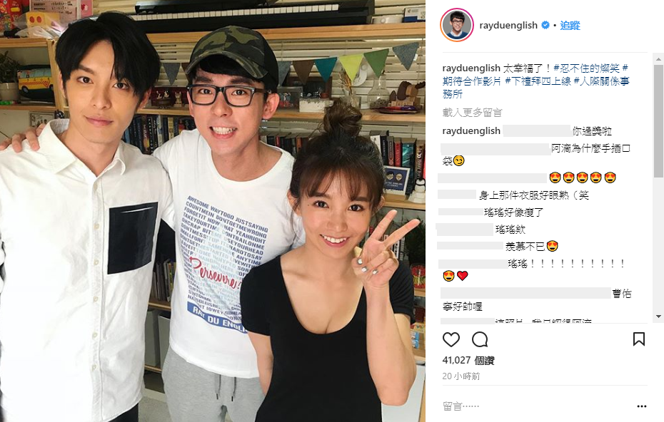 4日阿滴在IG「rayduenglish」放上自己和演員曹佑寧、郭書瑤的合照,並且打上:「太幸福了!忍不住的燦笑 期待合作影片」原來是曹佑寧和郭書瑤兩人為了宣傳新劇《人際關係事務所》上了阿滴的影片。合照中曹祐寧一頭韓系髮型非常帥氣,瑤瑤則穿著低胸T恤大方露出事業線及性感鎖骨,開心比YA;而阿滴站在兩人中間,笑得超燦爛,三人看起來合作得相當開心。不過網友卻關注到照片中阿滴少一支手!原來是阿滴右手搭在曹祐寧肩上,左手卻不見蹤影,讓網友紛紛笑問:「你左手放哪?」、「重點是左手」、「感覺在背後跟瑤瑤牽手」意外引起討論。