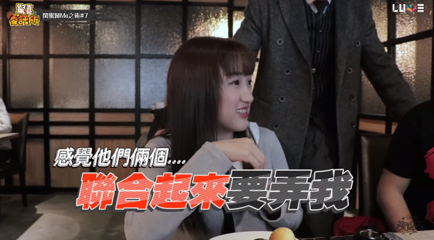 接著楊寶貝開始向肯肯詢問:「搞甚麼鬼?太奇怪了好嗎,你不是這樣的人。」並沒有懷疑肯肯和彤彤曖昧,而是直覺他們要聯合起來弄她,第六感超級準!最後聖結石公布真相並且訪問她感受時,她也坦承:「我有不爽耶」被整的無奈模樣超萌。
