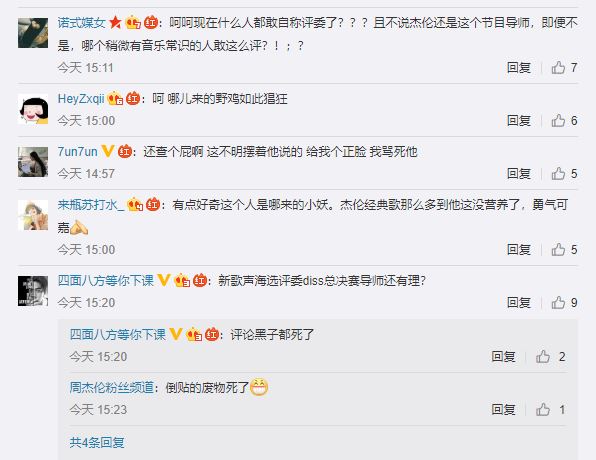 此番風波也引起網上群嘲一片:「金曲獎評委都不敢這麼說,他是哪來的勇氣」、「你很有營養?你很會寫歌?來說說你寫過哪首膾炙人口的歌」、「呵呵 就你這水準還diss我們周董?」