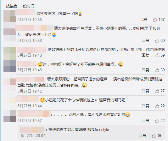 聽完之後,大批網友留言:「編曲跟PD48有差嗎」、「這抄襲速度世界第一吧!」還做出影片來比對,另外由於表演影片中,可以看到歌曲的編舞還沒確定,成員就登臺演出,SNH48粉絲也替偶像留言表達對公司的不滿,「據說是上場前10分鐘纔給成員的歌」、「整首都是freestyle!」