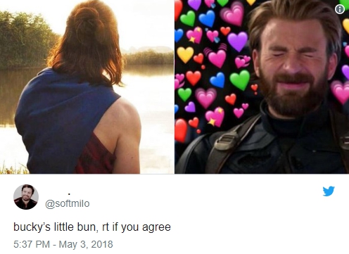 在 4 月底上映的漫威超級英雄主線大片《復仇者聯盟3:無限之戰》(Avengers: Infinity War)中,漫威讓影迷看見了許多首度碰面的新鮮超級英雄組合,也讓許多未見的老朋友再度會合,其中觀眾最期待的組合肯定少不了「美國隊長」克里斯伊凡(Chris Evans)和從酷寒戰士改名為「白狼」賽巴斯汀斯坦(Sebastian Stan)的團圓見面場景。在《復仇者聯盟3》中賽巴斯汀斯坦以一頭飄逸長髮演出巴奇·巴恩斯,但事實上當他將長髮隨手一紮,變成一顆包頭的髮型更令粉絲瘋狂。