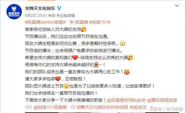而在6月2日的節目預告中,練習生段奧娟一改往常鄰家女孩的模樣,小露性感的演唱《domino》,令人眼睛一亮,渾身起雞皮疙瘩。但在正片中,段奧娟的演出片段卻被剪掉了,網友們也生氣的表示「八點準時看,一秒都捨不得快進,生怕錯過了我大娟的鏡頭,竟然被剪掉了,真的很生氣」鏡頭被剪一事引發眾怒。對此,經紀公司也出面回應「正在和節目組溝通...節目播出也會根據廣電要求的安排播出…..感謝粉絲支持,我們會繼續努力與節目組溝通」並且放出了以前段奧娟唱《domino》的視頻,希望可以藉此平息粉絲們的憤怒。