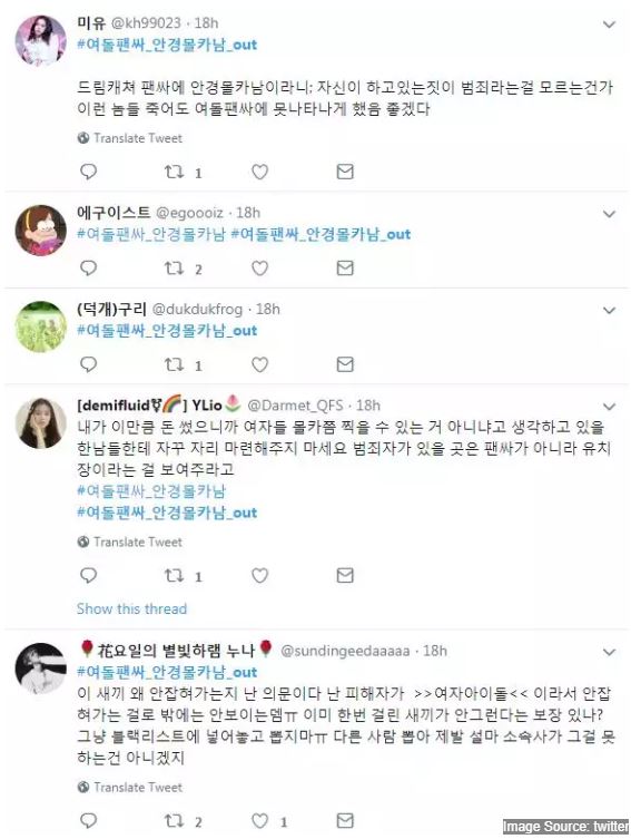 在推特上也出現大量譴責這位男粉絲行為的貼文,希望這位男粉絲不要再出現在女團的粉絲簽名會了,也有粉絲表示"並不是花錢去偶像簽名會就代表你可以偷拍!"、"為什麼要做這種事?",而粉絲們也希望所屬公司能出面處理這個問題,不然女團成員的人權就會一直受到侵害,也會一直不停的有下一個受害者!