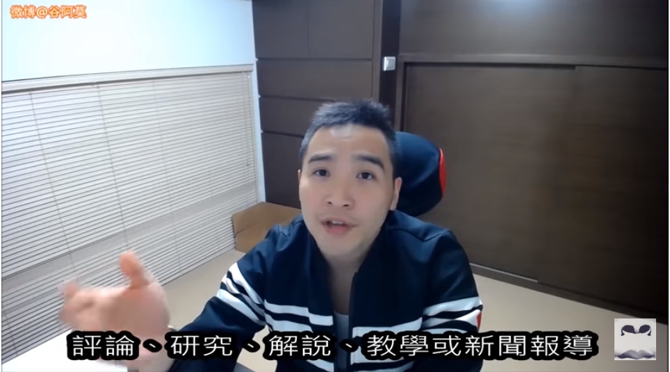 谷阿莫也曾在2017年4月解釋著作權合理使用原則在網路上的適用,「在網路這個無遠弗屆、自由性高、散佈性又強的地方,當你符合評論、研究、解說、教學或新聞報導的情況下,你可以在未先經著作權人的授權同意的情況下,就優先使用你在網路上找到的已公開任何人都能免費自由下載的他人著作之內容。」不少網友看見谷阿莫的理論,紛紛立挺說,支持二次發表的權利!
