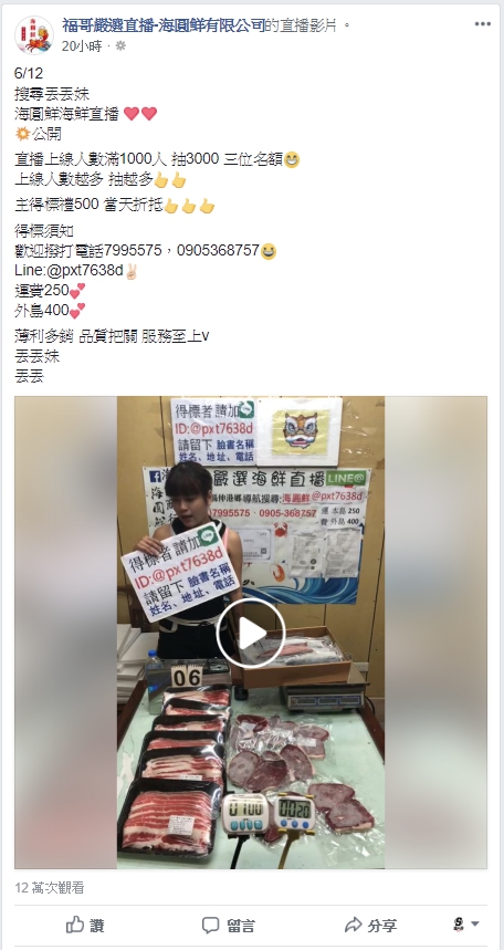 圖片來源/福哥嚴選直播-海圓鮮有限公司 直播畫面