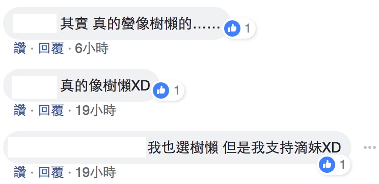 日前也在臉書上po文,表示自己被哥哥阿滴說很像樹懶,更開放網友留言她像是什麼動物,稱自己之前也被講過很像河馬,讓她傻眼,更大嘆「怎麼永遠拍不到美照」,網友也表示「贊同阿滴,這張真的有像」,更有網友搞笑說「像阿滴戴假髮」,笑翻滴妹。