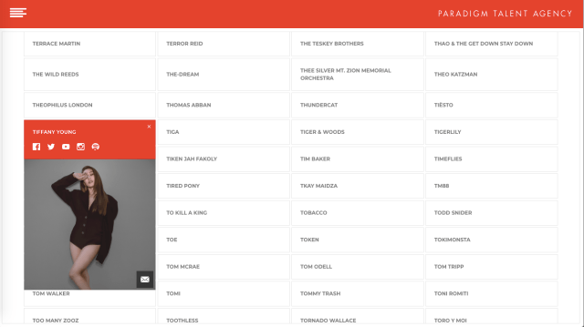 6月13日美國美國五大娛樂經紀公司之一的Paradigm Talent Agency正式於官方網站的音樂產業部門發表「少女時代」成員蒂芬妮(Tiffany)的形象照,並公開其藝名「TIFFANY YOUNG」,正式成為紅髮艾德(Ed Sheeran)傑森‧瑪耶茲(Jason Mraz)及Coldplay(酷玩樂團)、黑眼豆豆等知名藝人的師妹,是繼潔西卡(Jessice)後,第二位在美國出道的前少女時代成員。