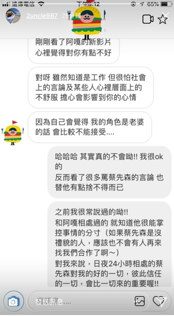 關於蔡阿嘎的影片引起網路上的討論,二伯非常理性,也頻頻為丈夫說話,她表示自己非常了解蔡阿嘎:「他很能掌控事情的分寸。」二伯強調,彼此信任的一切非常重要。