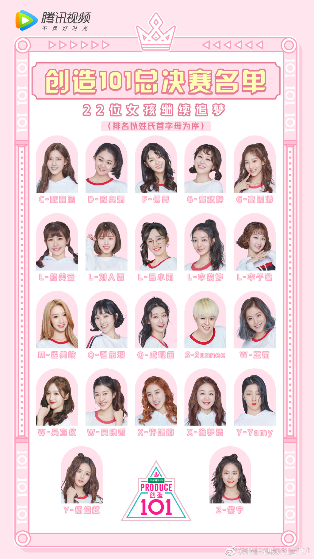 《創造101》是繼《偶像練習生》後最火紅的選秀節目,由黃子韜、胡彥斌、ELLA、羅志祥、張傑與王一搏等知名藝人擔任導師,將從華語圈43家經紀公司、練習生公司選出共計101名練習生,進行4個多月的封閉式訓練及錄製,最終將由全民票選出11人組成全新偶像女團,節目預計於23日迎來總決賽,公布出道名單。101位練習生目前僅剩下22位留下,究竟最終的出道名單會有誰,都令粉絲們相當期待。