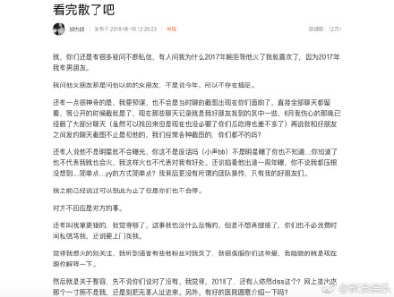 覺得我想火的別關注,我聽到語音有些他粉絲對我哭了,我很佩服你們這種愛,我能做的就是現在跟你解釋一下。