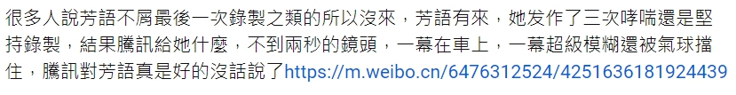 事後粉絲發現,陳芳語其實是有參與最後一期錄製,甚至在氣喘發作的情況下,都努力錄完影,可是最後鏡頭卻仍遭節目組無情刪光,唯一有出現的鏡頭甚至是被氣球遮住臉,不細看完全不會發現。