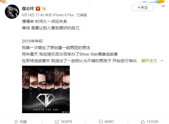 6月14日,羅志祥在微博公布近況,他說,他組成了一組六人男團,名叫C.T.O ,即日起出道。他表示,自己在2015年年時第一次萌生了想打造一組男團的想法。同年,羅志祥便通過綜藝節目《娛樂百分百》先選拔賽選出了一批他認為還不錯的男孩開始進行培訓,之後,為了讓團隊更為強大,羅志祥在一年後又舉辦了一次選拔,再選出了幾位男孩加入了培訓體系。於是,這些男孩最後羅志祥旗下的男團C.T.O 。