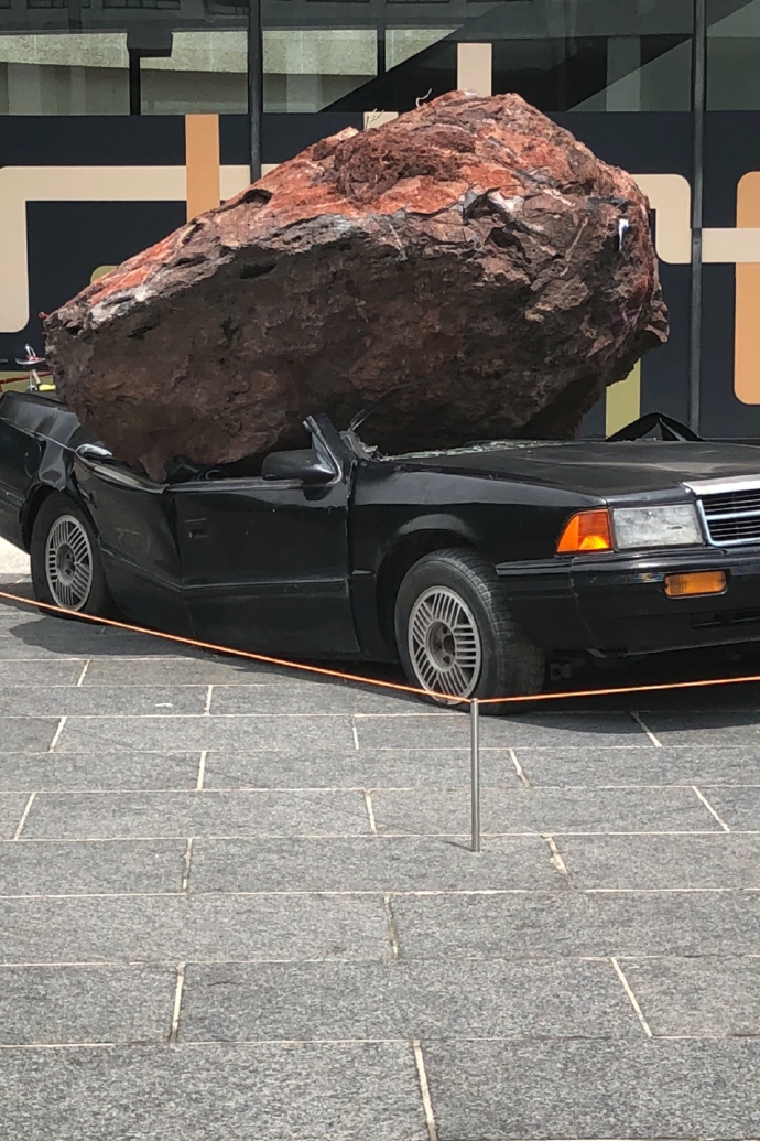 ▼《神力女超人: 1984》出現了巨石砸車場面,令人聯想電影中將會出現的戰鬥場面。