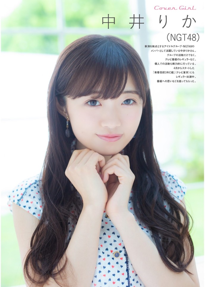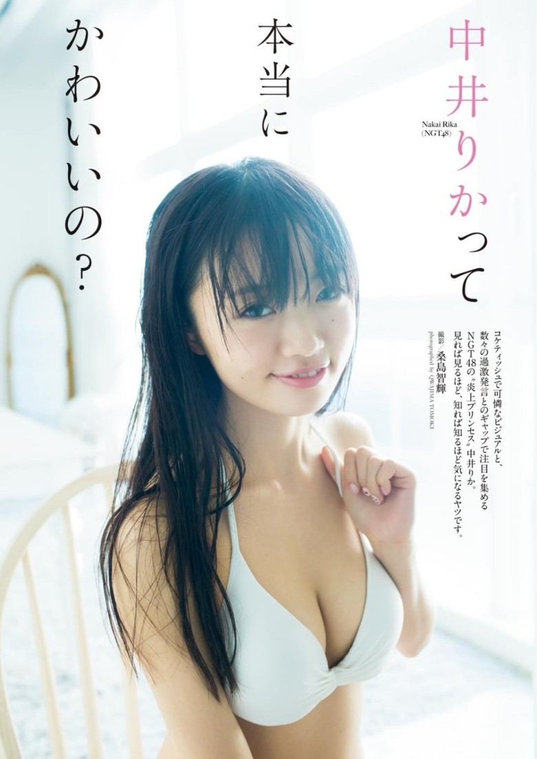 日本偶像藝人中井里佳1997年出生,是女子偶像團體NGT48 Team NIII的成員,NGT48 為AKB48第7個姊妹團體以及第5個國內姊妹團體,於2015年8月21日出道。中井里佳是NGT48的主將,在出道單曲中就擔任C位的角色,此外更開過個人演唱會,相當有人氣。