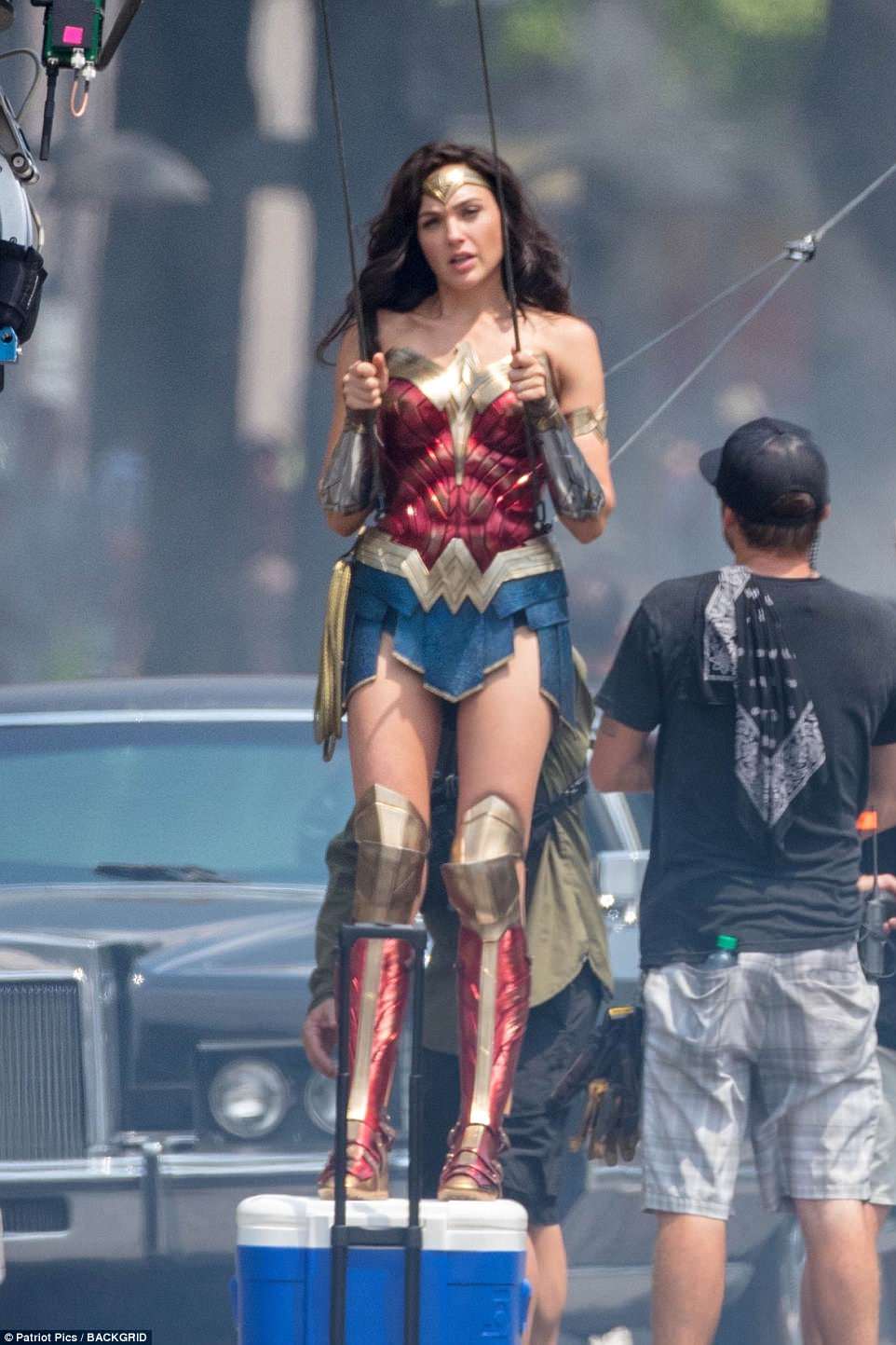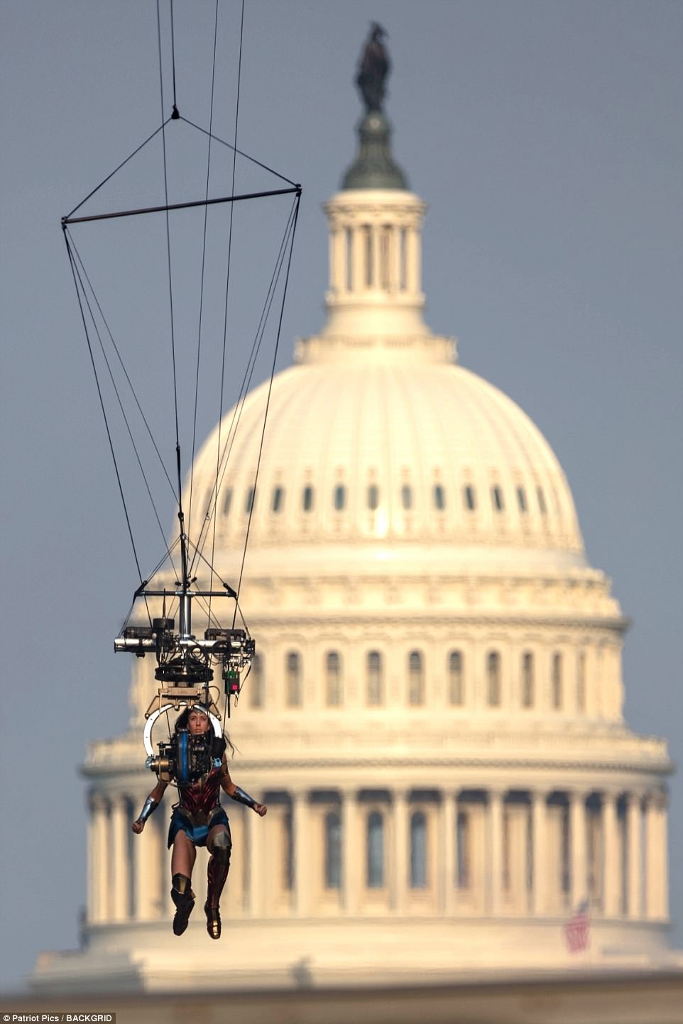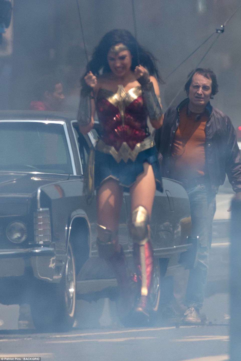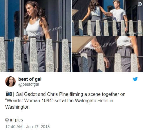 這周 DC 劇組來到華盛頓哥倫比亞特區的賓夕法尼亞大道取景拍攝,以美國最知名的政治性建築白宮為背景,神力女超人將在這裡展現動作場面。身高 178 公分的蓋兒加朵在這一次的拍攝首度換上了《神力女超人: 1984》的最新戰袍,劇組在蓋兒加朵身上設置好吊鋼絲設備之後,她就必須在豔陽之下不斷吊著鋼絲瘋狂做出奔跑中的動作,透過蓋兒加朵的表情就可以知道這個拍攝過程相當辛苦且疼痛異常。